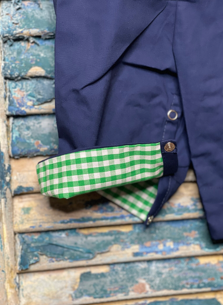 Dress your little explorer in this charming navy blue romper featuring playful smocked brontosaurus dinosaurs. Made from 100% soft cotton, it keeps your baby comfy from 3 to 24 months. Designed with true-to-size fit, it’s easy to care for with machine wash and gentle drying. Crafted with care by a trusted USA partner, this adorable romper invites fun and adventure at every crawl and step.