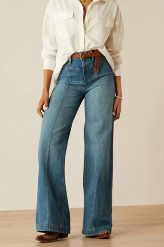 Long, lean and leggy - these wide-leg jeans will elevate your look to new heights. With a high waist and a subtle stretch, they'll give you a flattering fit and elongate your legs. Say hello to your new go-to denim!