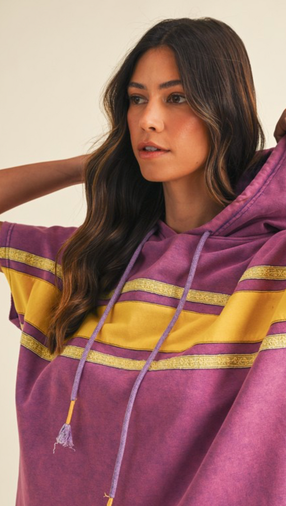Get ready for game day with this playful mineral washed color block hoodie! Crafted from soft French terry, it features a relaxed, loose fit and trendy dolman sleeves for ultimate comfort. The lace trim adds a delicate touch to your sporty look, while the hood keeps you cozy as the action heats up. Perfect for cheering on your team in style and comfort.