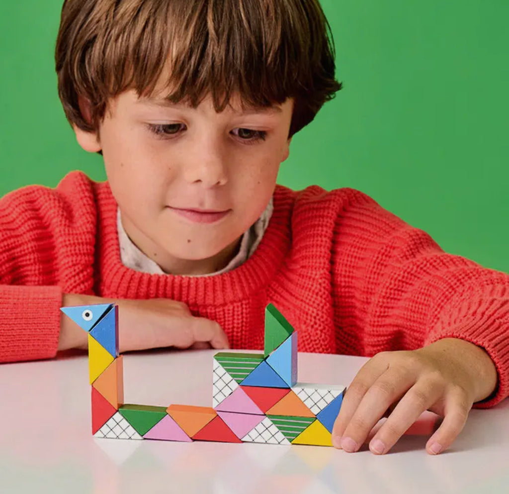 Crafted from high-quality wood, the Twist-A-Zoo puzzle is both fun and educational. With its unique twisting design, children can create a variety of animals and shapes. Stimulate their creativity and dexterity while learning about animals and shapes. A must-have for any young explorer!